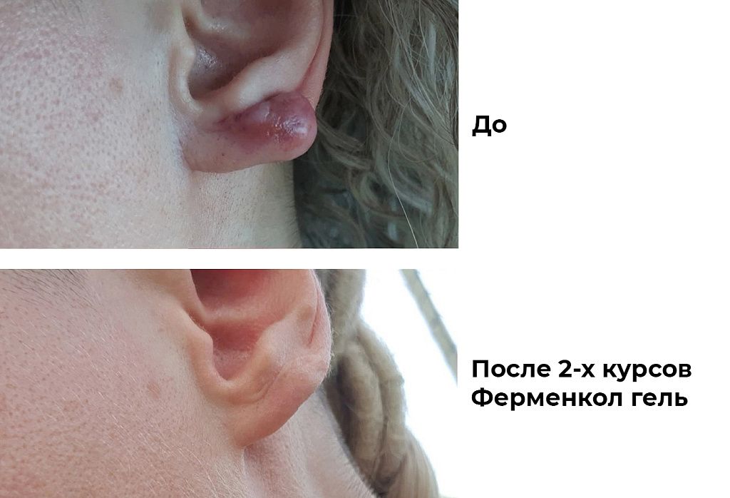 3. после полного заживления (когда корочки отпали) для профилактики гипертрофического рубца можно применять ферментные препараты, такие как Ферменкол, которые разрушают патологическую рубцовую ткань, повышают эластичность тканей и нормализуют цвет кожи;