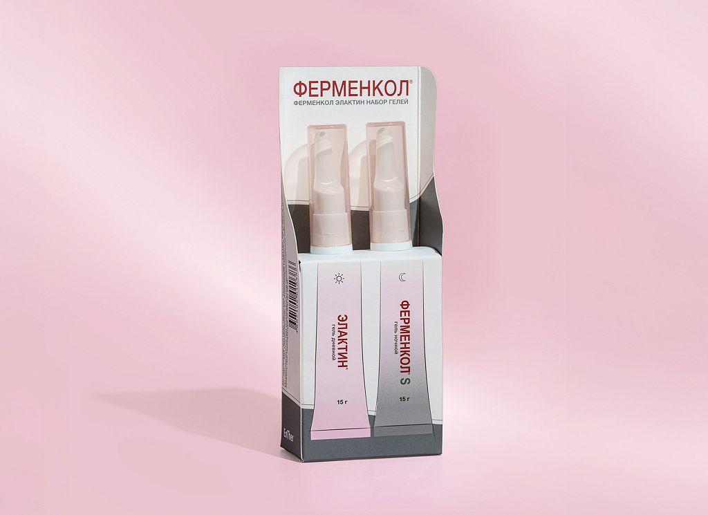 - Ферменкол S (ночной гель) — содержит ферменты коллагеназы, которые избирательно разрушают деформированные коллагеновые волокна, составляющие основу растяжек. Ферменты воздействуют только на патологически измененные структуры, не затрагивая здоровые ткани.